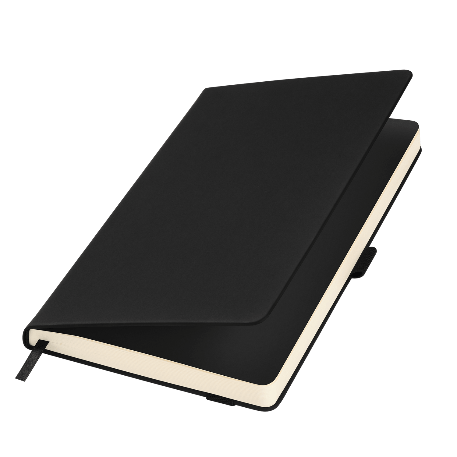 Вертикальная резинка-фиксатор с вставкой из ПУ-материала обложки и петелька под ручку, в цвет обложки