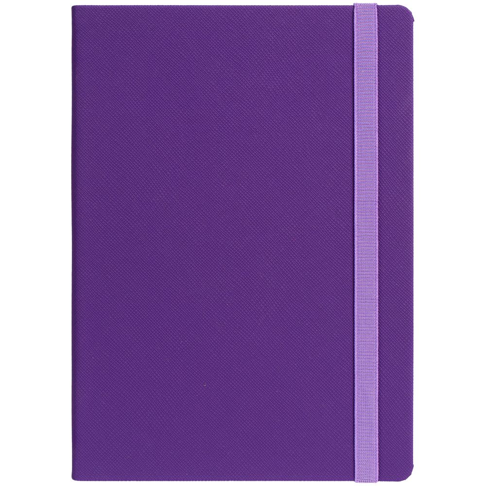 Ежедневник с твердой обложкой выполнен из материала Nice Touch, фиолетовый UU, и дополнен резинкой шириной 1 см и ляссе сиреневого цвета.