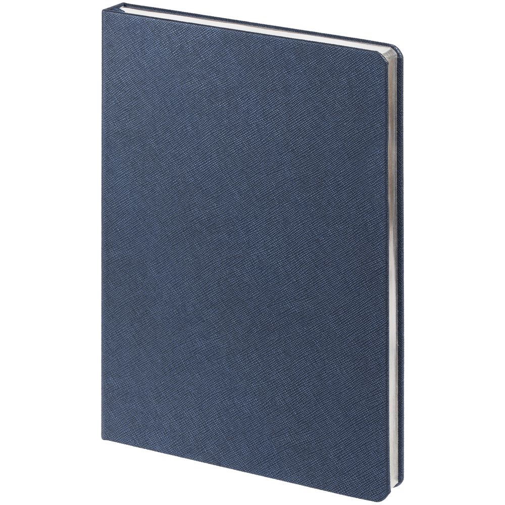 Ежедневник с твердой обложкой и серебристым обрезом, выполнен из материала Saffian, синий НН, дополнен ляссе в цвет обложки.