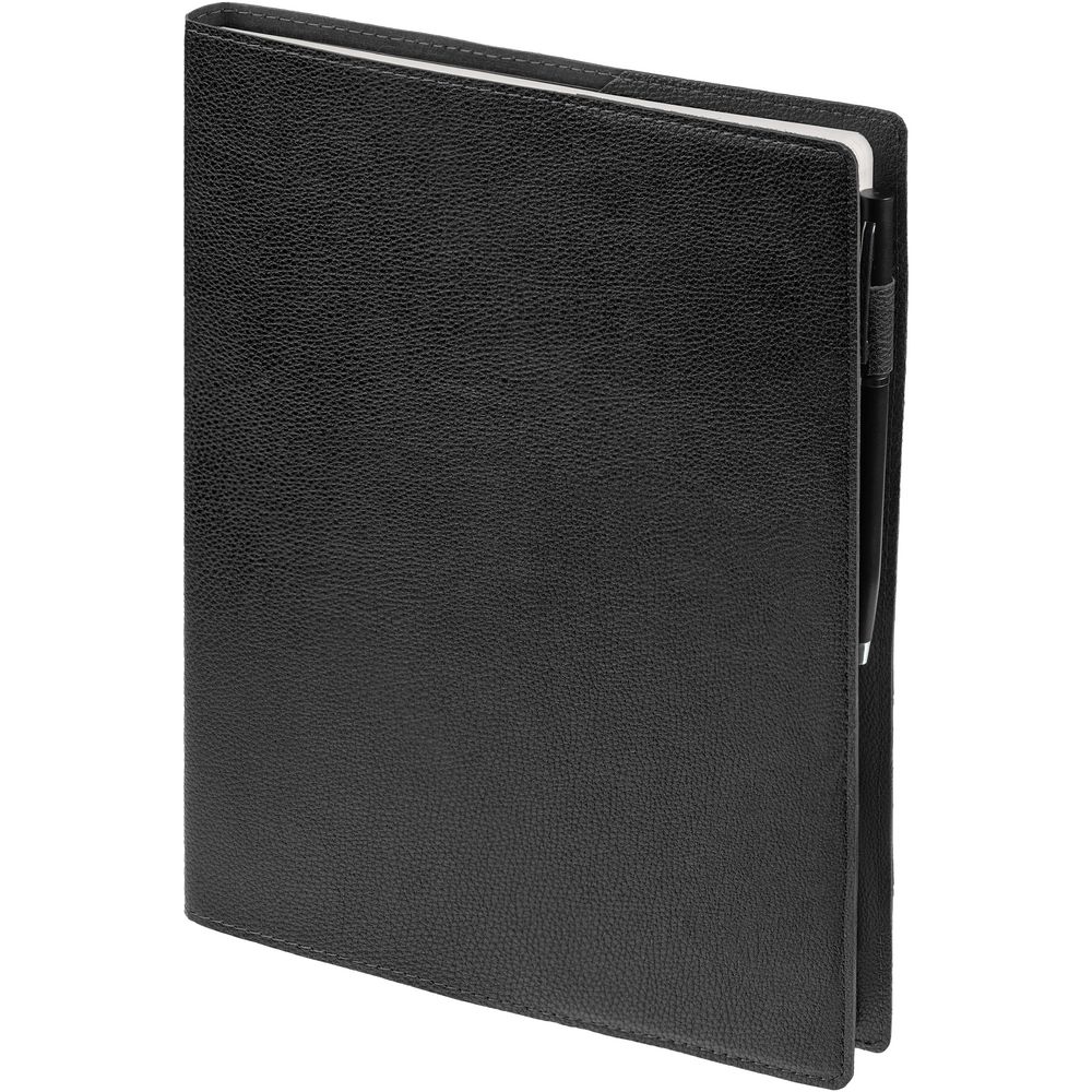 Ежедневник в суперобложке выполнен из материала La Fite, черный АА, дополнен ляссе и капталом черного цвета.
