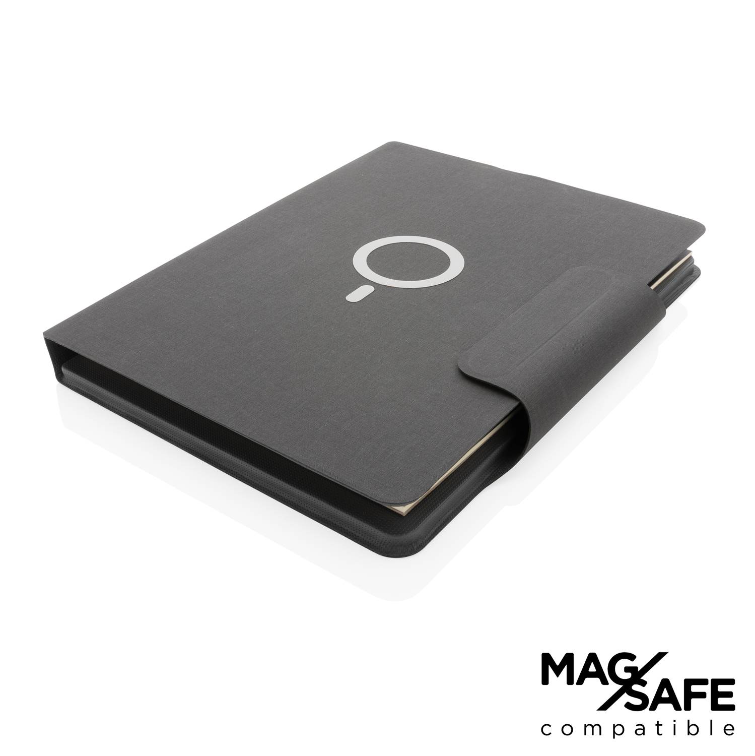 Стильный органайзер формата А4 оснащен аккумулятором на 8000 мАч и беспроводным магнитным зарядным устройством 10 Вт. Теперь заряжать смартфон стало намного быстрее и удобнее. Магниты позволят смартфону (iPhone 12 и новее) крепко и точно держаться на зарядном устройстве. Беспроводной модуль 10 Вт совместим со всеми устройствами, поддерживающими формат беспроводной зарядки QI. Вход 9 В / 2 A; беспроводной выход 9 В / 1.1 A; Type-C выход 9 В / 2 A. Органайзер содержит блокнот из 40 страниц в линейку. Плотность бумаги 80 г/м2. Органайзер снабжен карманом для смартфона и креплением для ручки. Внутри — 19 термостойких магнитов N52H для надежного крепления к смартфону. Зарегистрированный дизайн.