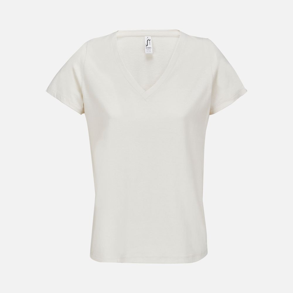 Женская футболка Regent с V-образным вырезом. Такой вырез снова актуален: он визуально удлиняет шею, подчеркивает линию ключиц и добавляет образу легкости.