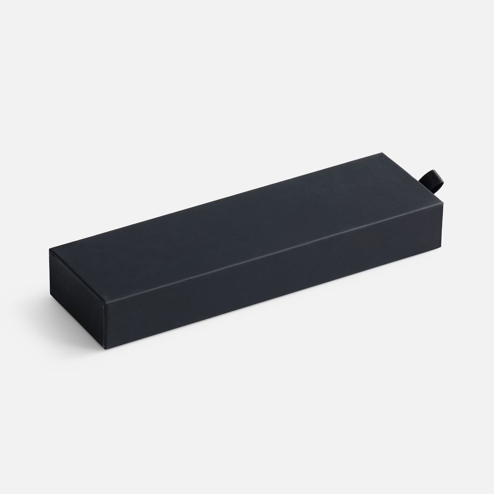 Картонный футляр с покрытием софт-тач с флокированным ложементом для одной ручки.