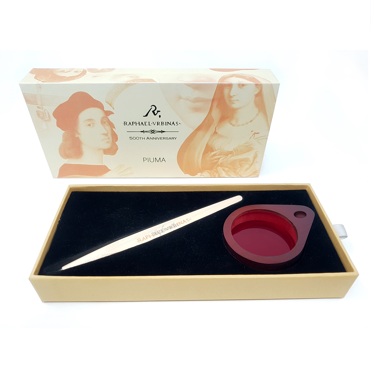 Лимитированная коллекция бренда Pininfarina в память о Рафаэле, одном из трех титанов эпохи Возрождения, приуроченная к 500-летию его смерти. Рафаэль с раннего возраста узнает, что красота - это не абстрактное и инстинктивное понятие, а результат глубокого изучения и внимания к каждой детали. Он наблюдал за великими художниками того времени и постигал их тайны. Человек огромной культуры, сочетающейся с необычайными исполнительными и техническими способностями, он обладал великим чувством равновесия и композиции. Наибольшую известность ему принес талант использования цвета, поэтому дизайнеры Pininfarina поиграли с цветами и выгравировали на корпусе ручки автограф Рафаэля, почти полностью скрытый для невооруженного глаза. Он становится видимым только при использовании фильтра цвета, входящего в набор. Ручка Pininfarina PIUMA - вечная ручка динамической формы в виде гусиного пера, сделана в память Кодекса о полете птиц учителя Рафаэля Леонардо да Винчи, целью которого было понять тайну полета. Она полностью сделана из дерева груши и весит всего 7 гр при длине 15,5 см. Вечная ручка имеет необычный пишущий узел в виде наконечника Ethergraf, который изготовлен из сплава металлов по запатентованной технологии. Он не содержит свинец и алюминий, производится вручную итальянскими мастерами и практически не расходуется за десятилетия использования. При соприкосновении с поверхностью бумаги, происходит химическая реакция и наконечник оставляет серебристый след, который напоминает цвет графитового карандаша, но обладает большей стойкостью. Идеально пишет на каменной бумаге. Набор упакован в подарочную коробку размером 215х100х30 мм.