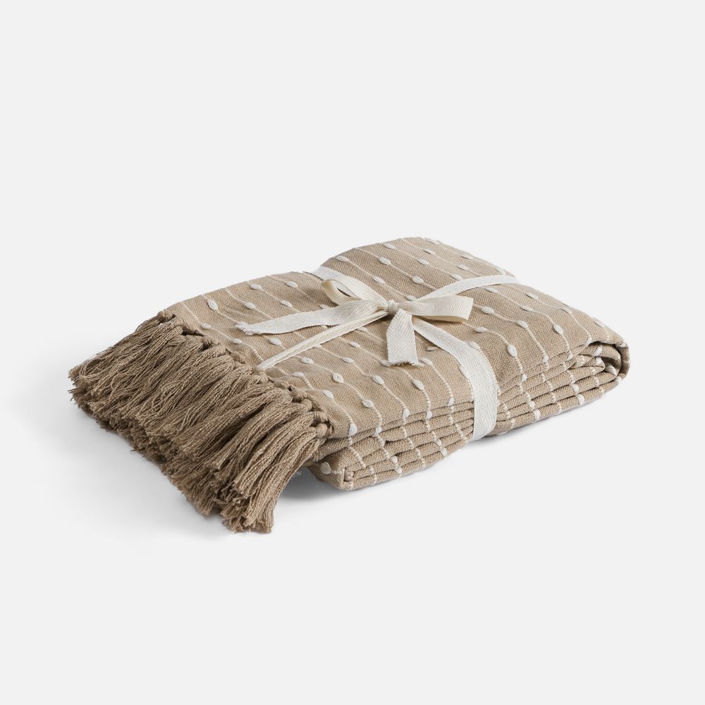 Фактурный узор с элементами счетной вышивки, а также спокойные природные оттенки пледа Shimla создадут приятное визуальное впечатление наряду с комфортными тактильными ощущениями благодаря натуральной основе пледа.