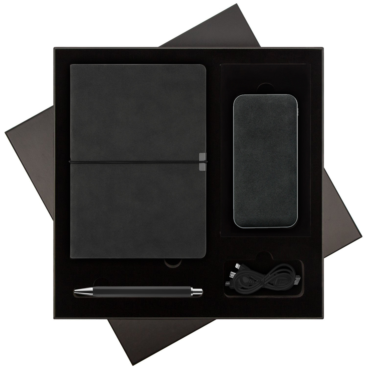 Подарочный набор Ин Велюр (In Velour), черный (ежедневник, ручка, аккумулятор)