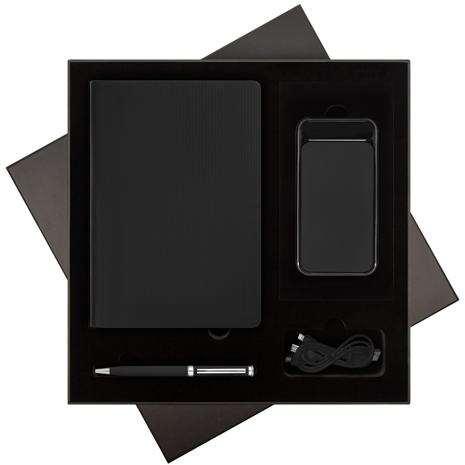 В комплекте: стильный ежедневник для планирования и любых записей, ручка для комфортного письма и внешний аккумулятор, который позволит оставаться на связи в любой ситуации.