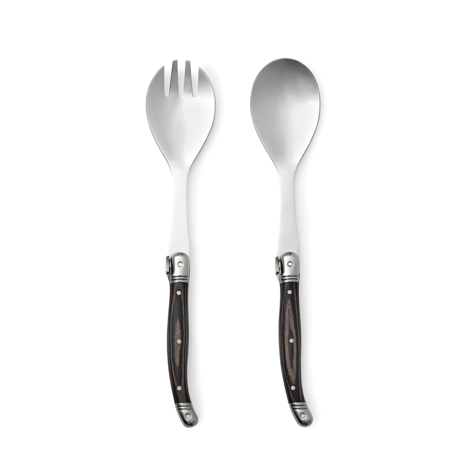 Набор Gigaro, состоящий из салатных ложки-вилки и ложки, поможет создать на кухне атмосферу французского бистро. Изящные ложка и ложка-вилка изготовлены из нержавеющей стали и паккавуда. Паккавуд — это материал, состоящий из древесины ценных пород и смолы. Так называемая ламинированная древесина получается очень прочной и долговечной, не скользит в руке, не впитывает запахи и не поддается влаге. Такой набор станет хорошим презентом любителям гастрономии, поскольку поставляется он в подарочной упаковке.