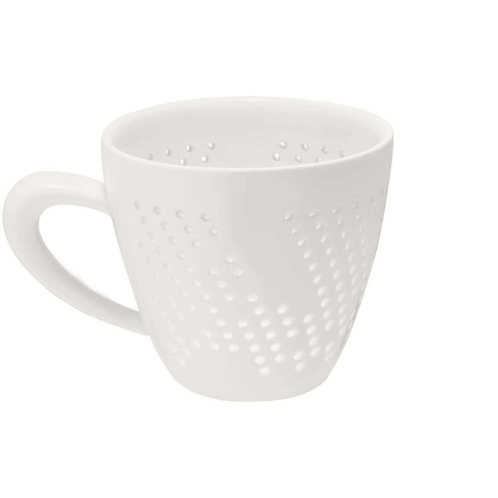 Чашка Coralli Rio — легкая, словно светящаяся изнутри посуда с легендарным узором «рисовое зерно». Благодаря тонкому слою прозрачной глазури кружка выглядит кружевной и ажурной, при этом напиток гарантированно остается внутри.