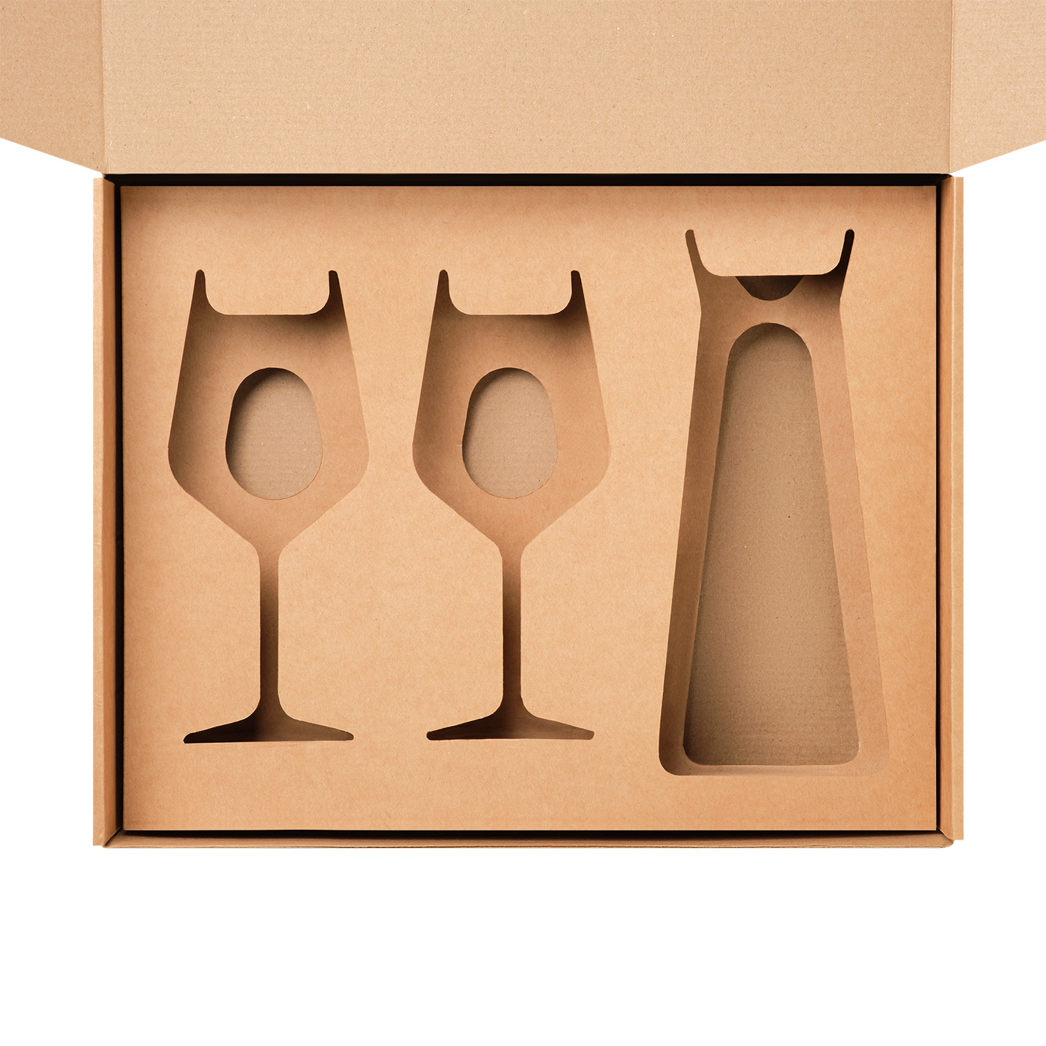 Виртуальный набор – полный комплект из ДВУХ ложементов под декантер + 2 бокала в большую универсальную коробку, крафт (арт. 21005.020)
